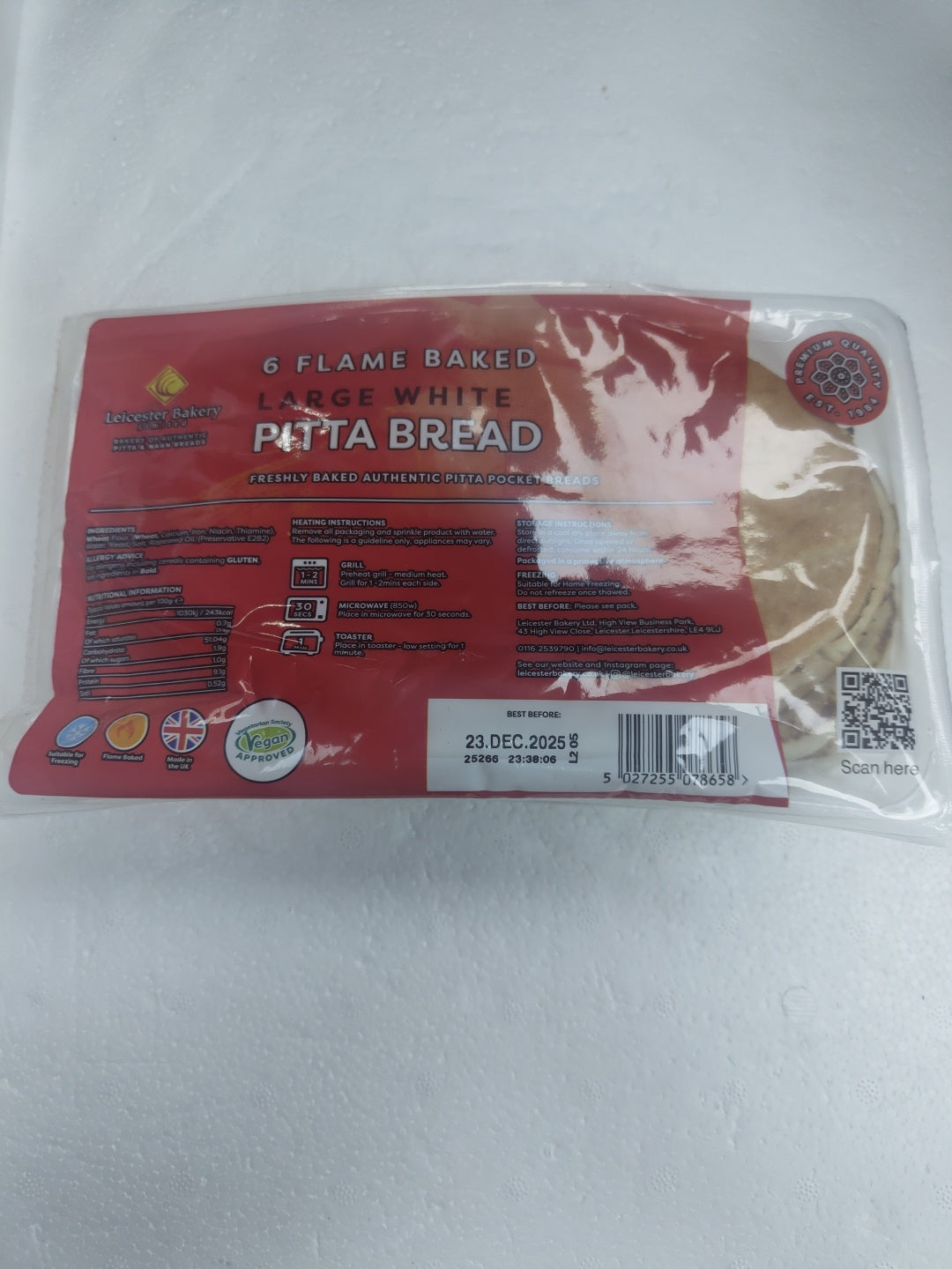 6 Flame baked Large White Pitta Bread
